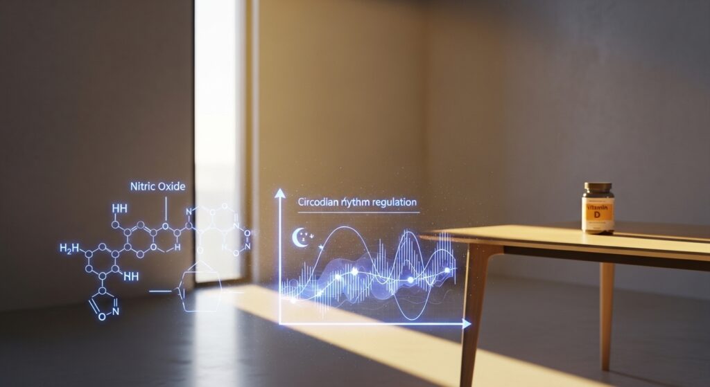 É muito comum receber pacientes que, ao verem seus níveis de Vitamina D adequados nos exames, acreditam que não precisam mais se preocupar com a exposição solar. “Eu já tomo a cápsula, preciso mesmo pegar sol?”. A resposta é sim. Embora a suplementação seja fundamental para corrigir deficiências — algo muito comum na vida moderna —, tomar Vitamina D via oral não mimetiza todos os processos biológicos que a radiação solar desencadeia no nosso corpo. A cápsula entrega a molécula (o hormônio), mas o sol entrega o estímulo para um funcionamento sistêmico. Óxido Nítrico e Saúde Cardiovascular Quando os raios UV atingem nossa pele, eles estimulam a produção de Óxido Nítrico, um potente vasodilatador. Essa substância ajuda a relaxar os vasos sanguíneos e a reduzir a pressão arterial, promovendo a saúde cardiovascular de uma forma que a suplementação oral de Vitamina D não consegue fazer. Regulação do Ritmo Circadiano A exposição à luz natural, especialmente pela manhã, é o principal sincronizador do nosso relógio biológico. A luz solar que entra pelos olhos sinaliza ao cérebro que é dia, estimulando a produção de serotonina (humor e bem-estar). À noite, essa serotonina será convertida em melatonina (hormônio do sono). Sem sol, bagunçamos esse ciclo, prejudicando o sono e o humor, mesmo que os níveis de Vitamina D no sangue estejam ótimos. Conclusão Não abandone sua suplementação prescrita, ela é essencial para a saúde óssea e imunológica. Mas entenda que somos seres solares. Tente expor braços e pernas por 15 minutos ao dia, sem protetor nesse curto período, para colher os benefícios completos que a natureza oferece. Referências Bibliográficas HOLICK, M. F. Sunlight and Vitamin D for bone health and prevention of autoimmune diseases, cancers, and cardiovascular disease. GELDENHUYS, G. et al. Ultraviolet radiation suppresses obesity and symptoms of metabolic syndrome independently of vitamin D.